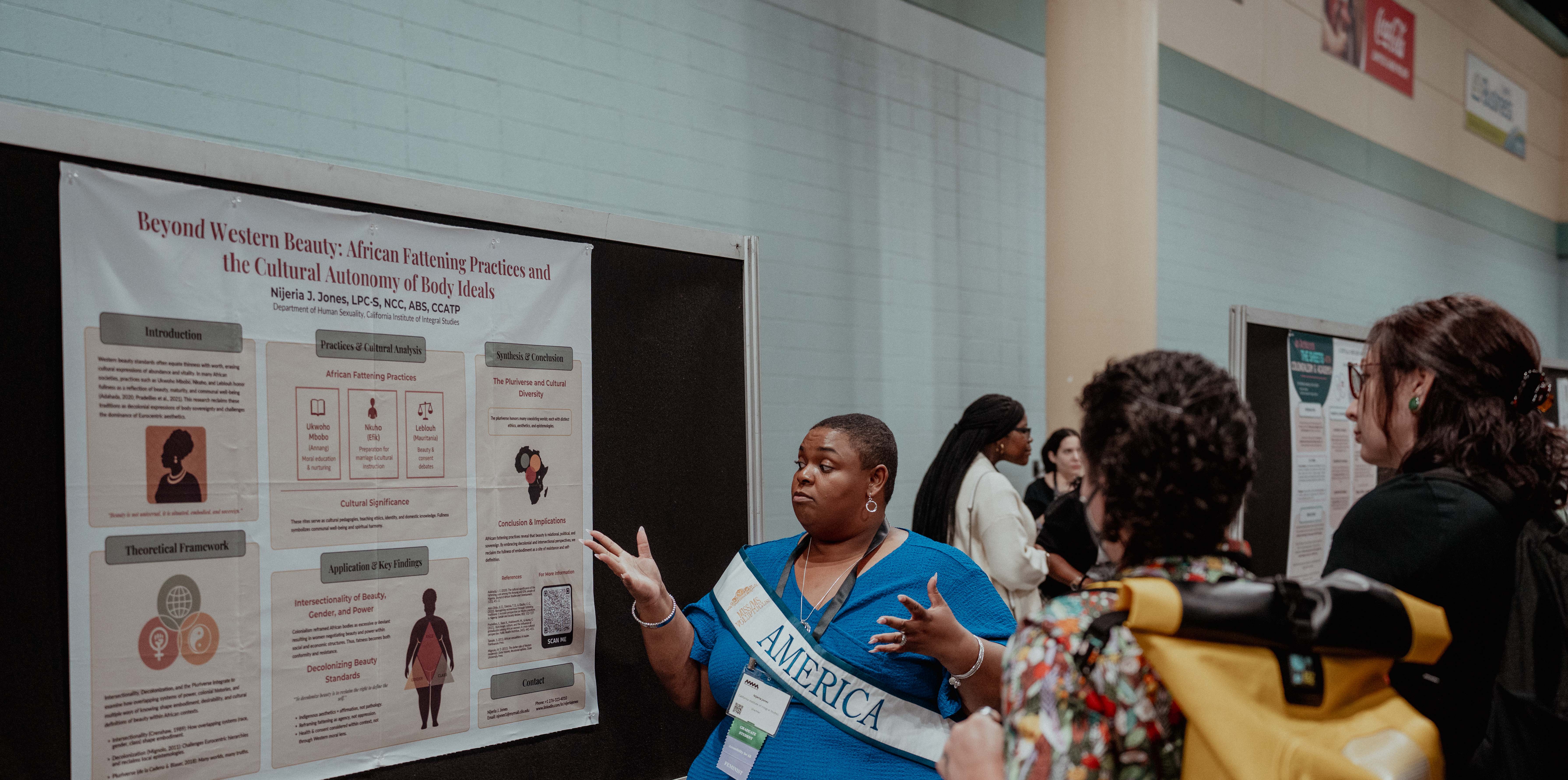 Poster proposals present research or analysis on a topic by combining graphics and text on a poster board. We schedule poster sessions together in a gallery-style time block in order to make space for presenters to interact on a one-on-one basis with the attendees viewing the poster. A well-planned poster communicates its message in a visually and textually powerful way, allowing the attendees to grasp the information quickly and accessibly with the author(s).