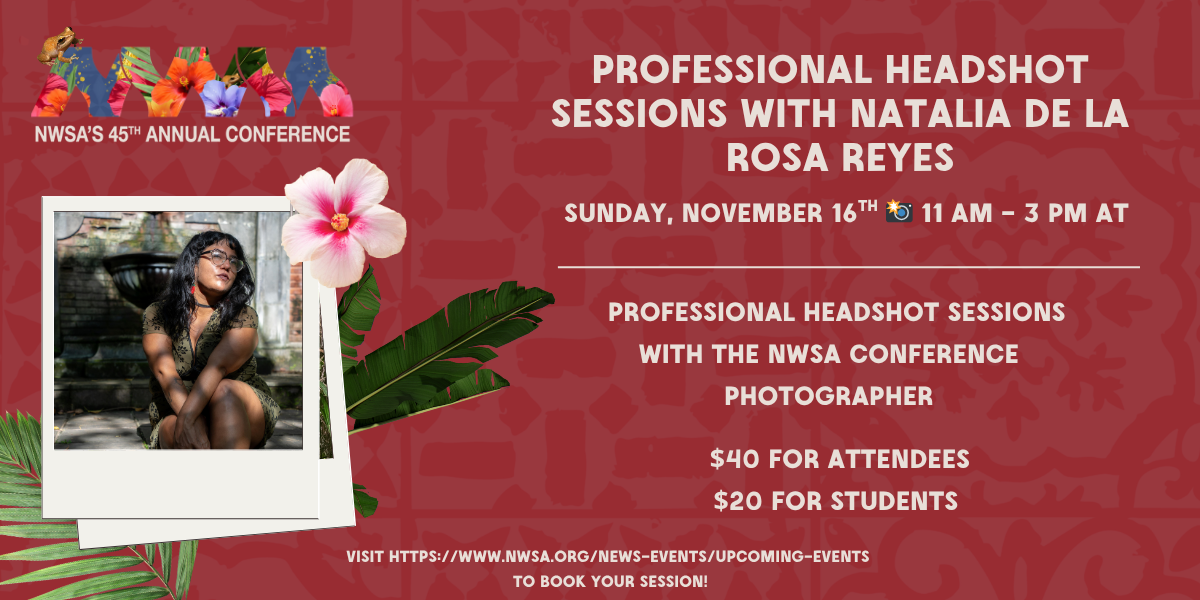 The NWSA is excited to offer headshot sessions for attendees of the 2025 NWS Annual Conference on Sunday November 16th in partnership with Natalia de la Rosa Reyes, our conference photographer.